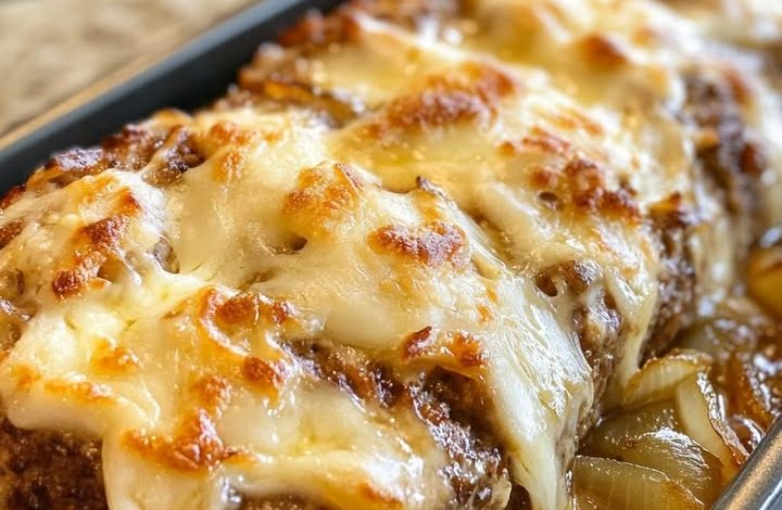 This French Onion Meatloaf captures all the rich flavors of the classic soup—sweet, caramelized onions paired with melted, gooey cheese—packed into a savory, hearty loaf. A combination of beef and pork keeps it tender and flavorful. French Onion Meatloaf with Swiss Cheese Ingredients Butter – 2 tablespoons Large onions, thinly sliced – 2 Granulated sugar – 1 teaspoon Ground beef – 1 1/2 lbs Ground pork – 1/2 lb Breadcrumbs – 1 cup Eggs – 2 Milk – 1/4 cup Worcestershire sauce – 1 tablespoon Salt – 1 teaspoon Black pepper – 1/2 teaspoon Dried thyme – 1 teaspoon Swiss…