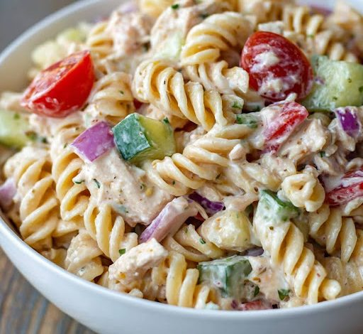 Why You’ll Love It 🕒 Comes together in about 20 minutes🥡 Great for parties or weekly meal prep🌈 Filled with vibrant, crunchy vegetables🥛 Smooth, tangy dressing with a savory touch Ingredients Salad 2 cups elbow macaroni or rotini 1 cup chopped celery 1 cup diced bell peppers (red, yellow, or green) ½ cup shredded carrots ½ cup finely diced red onion 1 cup thawed frozen peas Dressing 1 cup mayonnaise 2 tablespoons sour cream 2 tablespoons Dijon mustard 2 tablespoons apple cider vinegar 1 teaspoon sugar Salt and black pepper, to taste Instructions 1. Cook the Pasta Bring a pot…