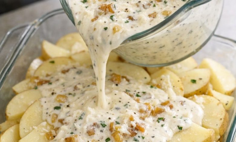 Rich and Creamy Baked Potatoes with Pour-Over Sauce