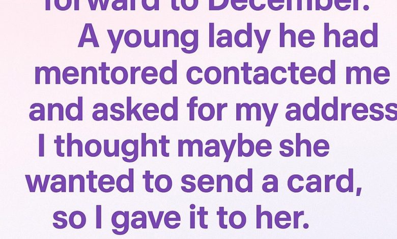 As the months passed, grief didn’t vanish—it simply settled in, like an unwelcome tenant. By December, I was still wading through that heavy fog when I received a message. A young woman had reached out, explaining that my son had once mentored her. She asked for my address, and I assumed she intended to send a note or card. I didn’t give it much thought.
