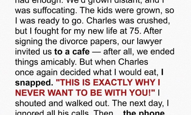 Two months later, they sat in a lawyer’s office, pens scratching across documents that would officially end fifty years of shared life. When it was over, the lawyer—an old friend—suggested they mark the occasion with a meal at the restaurant where Charles had proposed.