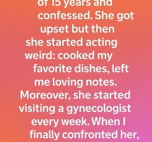 Then she started going to “doctor’s appointments” — always her gynecologist, always twice a week. I told myself not to pry, not after what I’d done. But my mind wouldn’t rest. Was she sick? Or… was she seeing someone else?