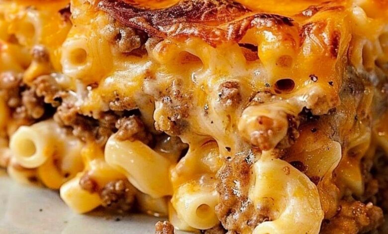 A deliciously hearty fusion of creamy mac and cheese layered over savory BBQ-glazed meatloaf. This all-in-one dish is pure comfort on a plate — perfect for cozy family dinners.