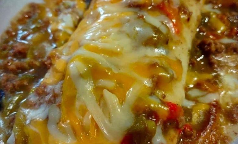 These hearty Wet Burritos are packed with savory seasoned beef and beans, drenched in a flavorful sauce, crowned with melted cheese, and baked until perfectly hot and bubbly.