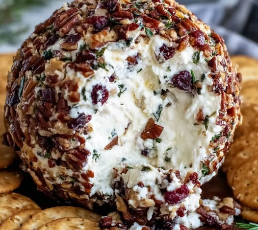 This cheese ball began as a simple experiment and quickly turned into a crowd favorite. Creamy, tangy, and dotted with sweet dried cranberries and aromatic herbs, it’s the kind of appetizer that vanishes in minutes—perfect for Thanksgiving, Christmas, or any relaxed get-together. Coated in a colorful mix of toasted pecans, cranberries, and fresh chives, it’s not only delicious but also a stunning centerpiece for any snack table. 📋 Ingredients IngredientAmountFull-fat cream cheese, softened16 oz (brick-style)Sharp white cheddar, shredded1 ¾ cupsFresh chives (divided)2 tbspFresh parsley, chopped2 tspBrown sugar1 tspGarlic powder1 tspSalt¼ tspFreshly ground black pepper¼ tspDried cranberries, finely chopped (divided)¾ cupPecans,…