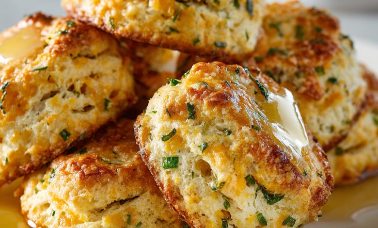 Oven-Baked Cheddar Herb Biscuits Description:These flaky, tender biscuits are packed with sharp cheddar, fresh chives, and parsley, making them the perfect partner for soups, stews, or hearty dinners. Ingredients: All-purpose flour – 2 cups Baking powder – 1 tablespoon Baking soda – ½ teaspoon Salt – ½ teaspoon Garlic powder – ¼ teaspoon Cold unsalted butter, cut into cubes – ¼ cup Shredded sharp cheddar cheese – 1 cup Fresh chives, finely chopped – 1 tablespoon Fresh parsley, finely chopped – 1 tablespoon Buttermilk – ¾ cup Instructions: Step 1: Preheat and PrepareSet the oven to 425°F (220°C). Line a…