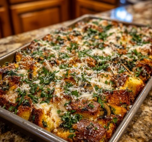 Few dishes deliver comfort quite like a hot, cheesy spinach and mushroom strata. Rooted in Italian-inspired flavors, this savory baked casserole layers cubes of day-old bread with a rich egg custard, sautéed vegetables, and generous amounts of melted cheese. It’s hearty, budget-friendly, and perfect for family dinners or laid-back weekend brunches.