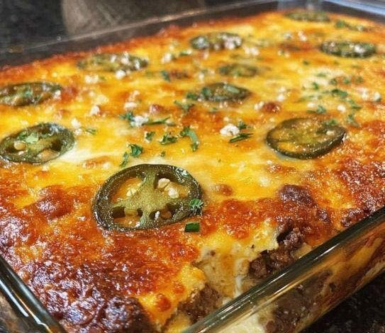 This low-carb, keto-friendly casserole brings together everything you love about jalapeño poppers — creamy, cheesy, rich, and just the right amount of heat — combined with savory ground beef for a filling, comfort-food meal.