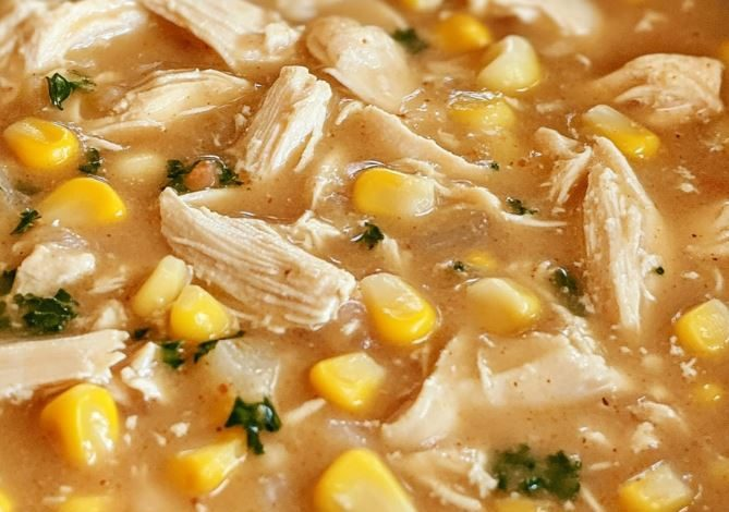 This Creamy White Chicken Chili with Corn is rich, comforting, and gently spiced with just a hint of heat. Loaded with tender chicken, hearty beans, and sweet corn in a smooth, savory broth, it’s a simple one-pot dinner that comes together beautifully on busy evenings.