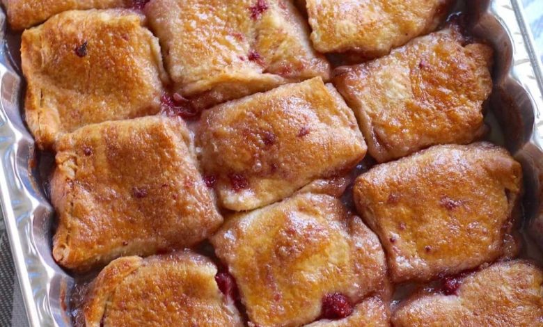 This dessert features juicy fresh strawberries wrapped in tender crescent roll dough, then baked in a rich, buttery cinnamon–brown sugar sauce. A splash of lemon-lime soda keeps everything moist and light, creating a warm, comforting treat.