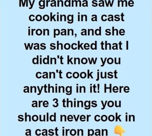 She explained that acidic foods — tomato sauces, citrus-heavy dishes — could eat away at the seasoning she’d built up over decades. Fragile fish could stick stubbornly, leaving behind flakes that were nearly impossible to remove without causing damage. And if you baked something sweet in a skillet seasoned almost entirely with savory meals? The flavors lingering in the iron would follow you right into the dessert. One careless choice, she said, could undo years of quiet effort and care.