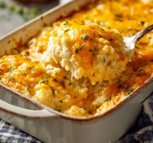 This 3-Ingredient Cheesy Rice Casserole is a comforting, effortless side made from pantry staples. Creamy, cheesy, and satisfying, it pairs perfectly with roasted meats, grilled vegetables, or any main dish that could use a cozy companion.