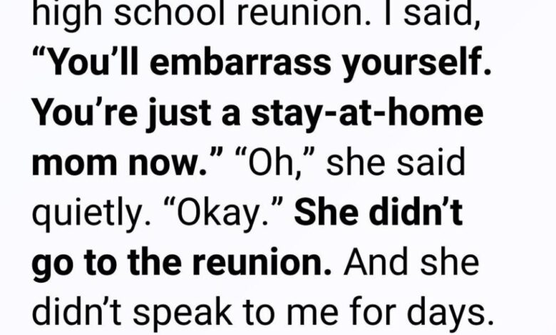 I shrugged, irritation creeping in. “Anna, your classmates are probably lawyers, doctors, CEOs. What will you say? ‘I just stayed home with my kids’?”