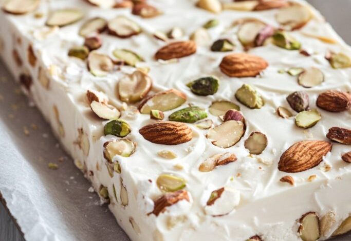 Light & Airy: Whipped egg whites give the nougat its characteristic fluffy, glossy finish.
