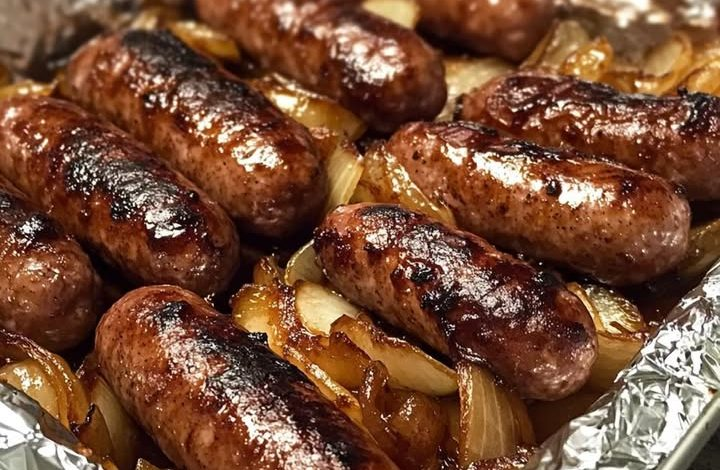 Oven-Braised Beer Brats with Caramelized Onions and Apples