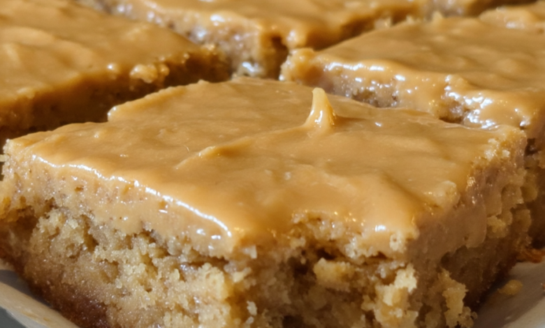- Pour the frosting over the cooled bars, spreading evenly. Allow it to set before slicing and serving.