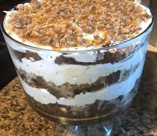 Perfect for holidays, potlucks, birthdays, or any gathering that calls for something sweet and impressive, this no-bake masterpiece combines familiar favorites like brownies, pudding, whipped topping, and candy in one irresistible trifle-style dessert.