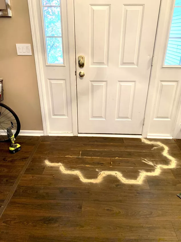 • Use an oscillating saw to cut along the traced line and remove old flooring.
