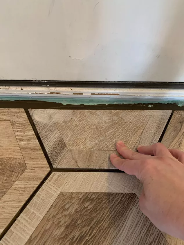 • Apply caulk along the edges between the tiles and existing flooring with a caulk gun.