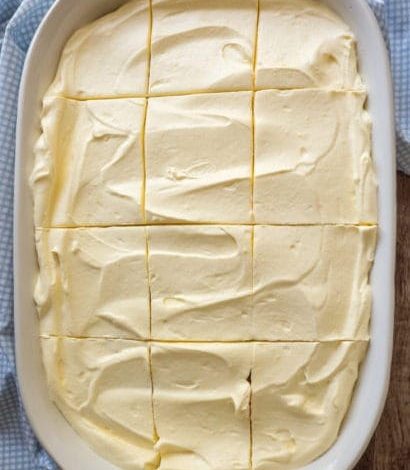 Prepare the white cake mix according to the package directions, using 1 cup of whole milk instead of water. Bake in a 9×13-inch pan and allow the cake to cool completely.