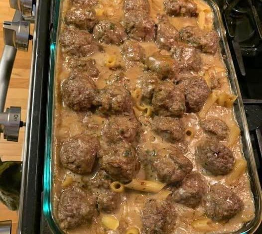 This comforting casserole layers tender Swedish-inspired meatballs with egg noodles, all baked together in a rich, creamy sauce and finished with a blanket of melted Swiss cheese.