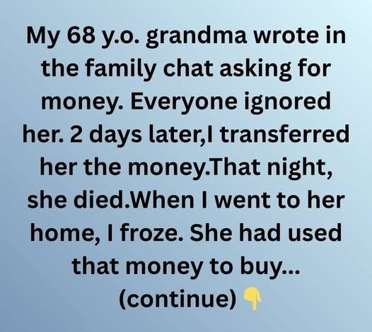 It came late on a Wednesday night. Just a quiet buzz from my phone, a single line in our family group chat—one I’ll never forget. “Does anyone have a little to spare? I need $60 for something important,” my grandmother wrote. No emojis. No explanation. Just that. The chat went silent. No replies from my mom, my aunts, my cousins. One by one, the little “seen” indicators appeared. And then—nothing. I stared at the screen, waiting for someone else to respond. But no one did. Two days later, something tugged at me. I sent her a quick message: “Hey Grandma, everything okay?” She didn’t answer. That night, she died in her sleep. When my mom called the next morning, her voice was already breaking. I didn’t cry right away. I just sat there, numb, scrolling through our chat, staring at that last unanswered message. Later, I drove to her apartment to help sort through her things. She’d always lived simply—a one-bedroom place on the edge of town, filled with crocheted blankets, faded photos, and the soft scent of lavender. On the kitchen table sat a small box, neatly wrapped with a thin blue ribbon. Beside it was a folded note with my name on it. “Thank you for remembering me.” I froze. It took me a moment to breathe. Then I sat down and opened the box. Inside were two leather-bound sketchbooks and a set of graphite pencils—the exact ones I’d admired in a craft shop months ago but never bought. Her note, written in her careful, looping handwriting, read: “You always believed in my stories. I wanted you to have the tools to tell your own.” That’s when I broke. I don’t know how long I sat there crying. But when I finally pulled myself together, the pieces began to fall into place. That $60 she’d asked for—it wasn’t for bills or groceries. It was for this. Her final purchase was a gift for me. I thought back to all the times we’d sat at that table, her telling stories she never finished, poems she never published, sketches she never showed. When I was little, she’d read me her stories before bed—tales of courage, forgiveness, and finding light in ordinary places. She’d laugh and say, “Someday, you’ll write better ones.” I always brushed it off. But sitting there with her final gift in my hands, I realized—she meant it. She believed in me long before I ever did. At her funeral, everyone brought flowers. I brought the box, untouched except for the ribbon I’d retied. When it was my turn to speak, I placed it beside her photo. “I didn’t come here to talk about loss,” I said. “I came to talk about love—the quiet kind. The kind that doesn’t ask for attention or thanks.” I told them about the message. About the silence. About how she spent her final days thinking not of herself, but of me. There wasn’t a dry eye in the room. After the service, relatives came up to me, ashamed, murmuring things like “I meant to reply” or “I didn’t think it was urgent.” But Grandma had always been like that—never wanting to burden anyone, even when she needed help. Her generation had a quiet kind of strength. They endured. They gave. Even when no one was looking. That night, I placed her sketchbooks on my desk. I opened the first one. On the inside cover, in faded pencil, she’d written: “Stories never die, sweetheart. They just wait for someone brave enough to tell them.” So I made her a promise. I vowed to finish the book she never got to write—the one she’d talked about for years, the story she started but never shared. Every night after work, I sat down with her sketchbooks and began writing. At first, it was fragments—lines inspired by her stories, sketches of her favorite scenes. Slowly, it grew into something more. Months passed. Writing became therapy. The ache in my chest softened into gratitude. I started seeing her everywhere—in the scent of old paper, the way sunlight hit my desk, the whistle of the kettle just before she’d say, “Tea’s ready, darling.” And one evening, as I turned the final page of her notebook, I realized: the story I’d been writing wasn’t just hers. It was mine too. It was about loss, yes—but also about resilience. About how love doesn’t vanish when someone dies. It lingers—in small acts, unfinished dreams, and the faith someone had in you long before you had it in yourself. A year later, I printed the manuscript and placed the first copy on her grave. I read her note again before setting it down. “You always believed in my stories. I wanted you to have the tools to tell your own.” And I whispered, “I did, Grandma. Because of you.” Her story didn’t end with her death. It just changed hands. Now, when people ask what inspired me to write, I tell them the truth. It wasn’t fame or ambition. It was a $60 gift from a woman who had nothing to give but love—and gave it anyway. The world may remember her as an ordinary woman who lived a quiet life. But to me, she was proof that the smallest gestures can echo louder than grand speeches. That love, expressed simply, can outlive everything else. So if you ever hesitate to answer a message like hers—don’t. Pick up the phone. Send the help. You never know what someone’s final act of kindness might be. Because sometimes, the things we think are small—a few words, a few dollars, a simple act—are what keep someone else’s story alive long after we’re gone. And if you’re lucky, maybe one day, someone will hold your gift in their hands and feel what I did—the warmth of a love that never really left. change tetx but no contex