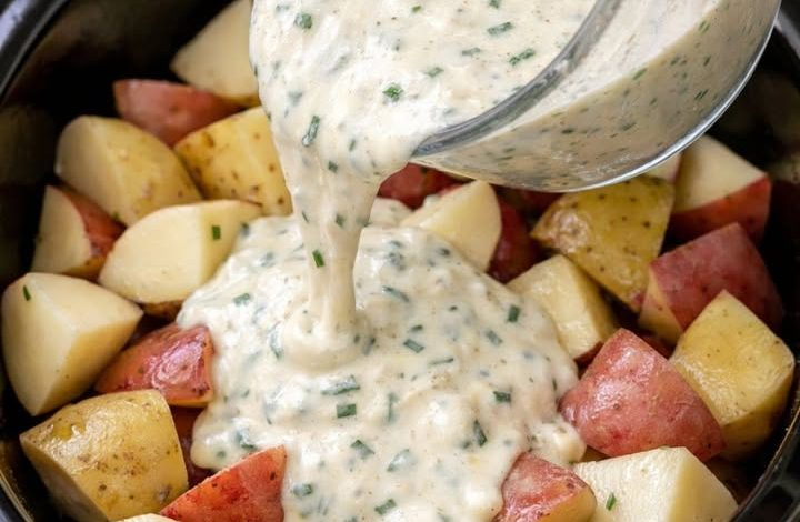 These Creamy Ranch Potatoes are the perfect hands-off side dish, blending the zesty flavor of ranch with rich, smooth cream cheese. Instead of being mashed, the potatoes are served in quarters and coated in a thick, savory sauce, giving them a more indulgent, casserole-like texture. Yukon Gold potatoes work especially well because their naturally buttery flesh holds up beautifully during slow cooking without breaking down. Creamy Ranch Potatoes Ingredients IngredientAmountSmall Yukon Gold or red potatoes, scrubbed and quartered3 lbsCream cheese, softened and cubed1 (8-ounce) blockUnsalted butter, cut into pieces4 tablespoonsLow-sodium chicken broth1 cupDry ranch seasoning mix2 tablespoonsFresh chives, chopped2 tablespoonsFreshly…