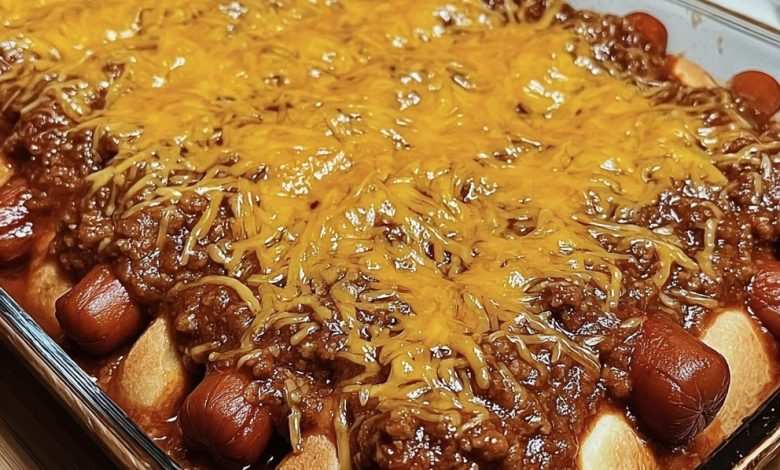 This hearty and playful casserole combines everything people love about chili dogs—zesty chili, smoky hot dogs, fluffy cornbread, and melted cheddar—into one easy-to-make dish. It’s warm, comforting, and nostalgic, and it’s so simple that you might start making this instead of preparing individual chili dogs. 📝 Ingredients Overview CategoryIngredientsCornbread base1 box (8.5 oz) cornbread or muffin mixHot dog filling4–6 hot dogs, chopped1 can chili with beansVegetables½ green bell pepper½ onion1 celery stalkSeasonings1 tbsp brown sugar½ tsp garlic powder1 tsp chili powderCheese topping1 cup shredded cheddar (divided)Cooking oil1 tbsp olive oil 👨🍳 Step-by-Step Instructions 1. Make the basePreheat the oven to…